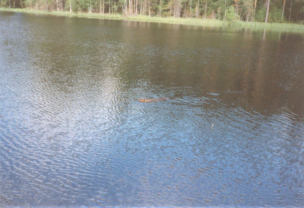 Karjolammen kesäistä pintaa ja majava uimassa